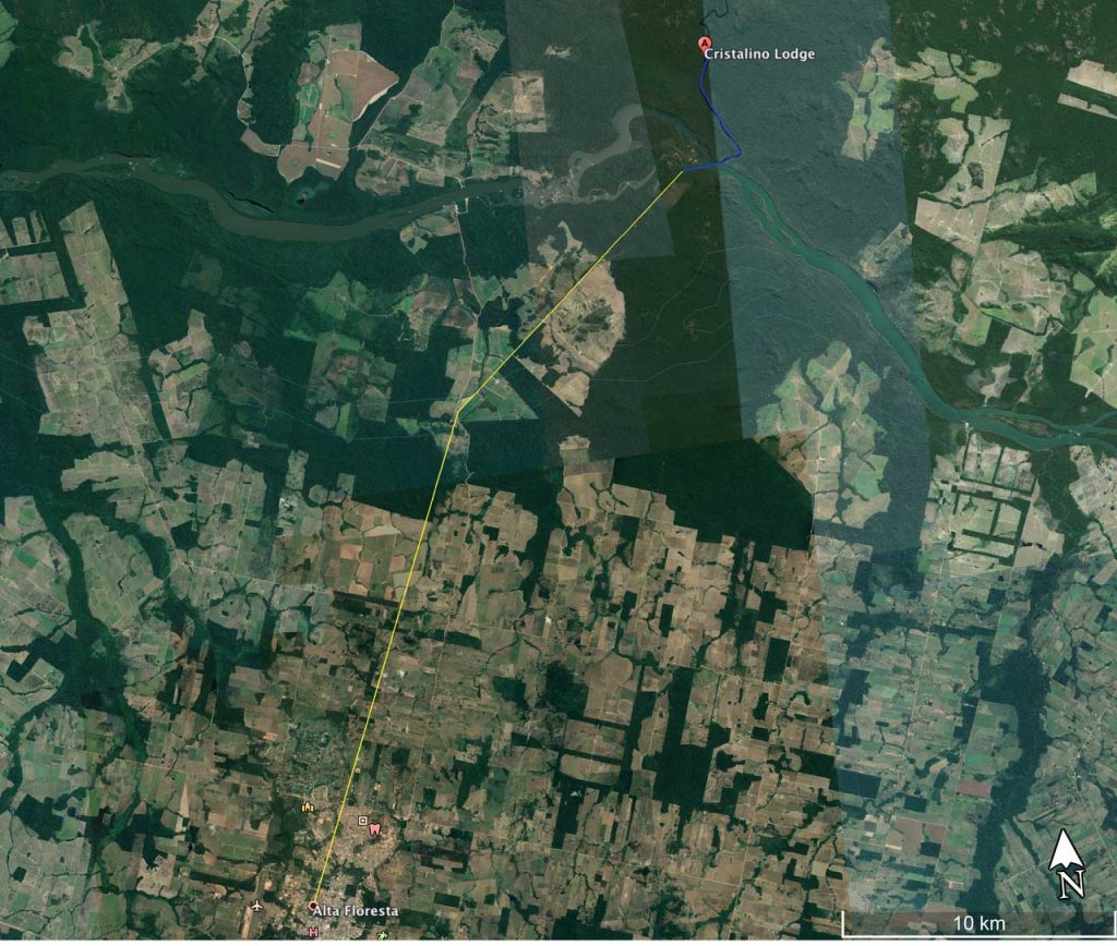 - Sections: Alta Floresta; Pousada “Cristalino Lodge”; rivière Teles Pires; rivière Cristallino; les tours de guet du lodge.