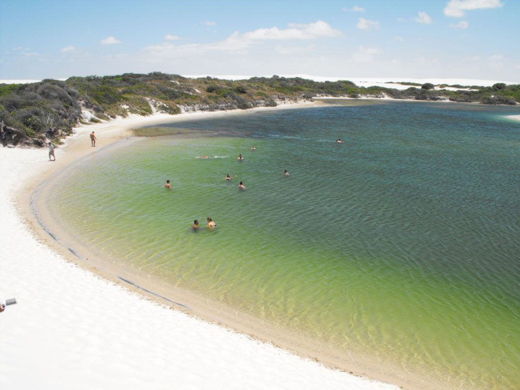 Le matin, une visite est prévue pour le parc national Lençóis Maranhenses, une par des dunes de sable blanc et lagon cristallin avec des couleurs allant du vert au bleu dans le désert magique. Vous pouvez vous prélasser dans ces lagunes et la natation; nous atteignons les lagunes “Preguiça”, “Azul” et “do Peixe”.